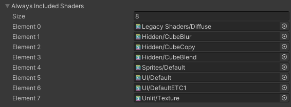 프로젝트에서 사용하고 있는 Shader를 아래 목록 (Project Settings / Graphics)에