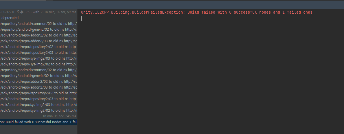 Mono빌드는 잘되다가 IL2CPP 빌드가 안되는 오류가 발생했다
